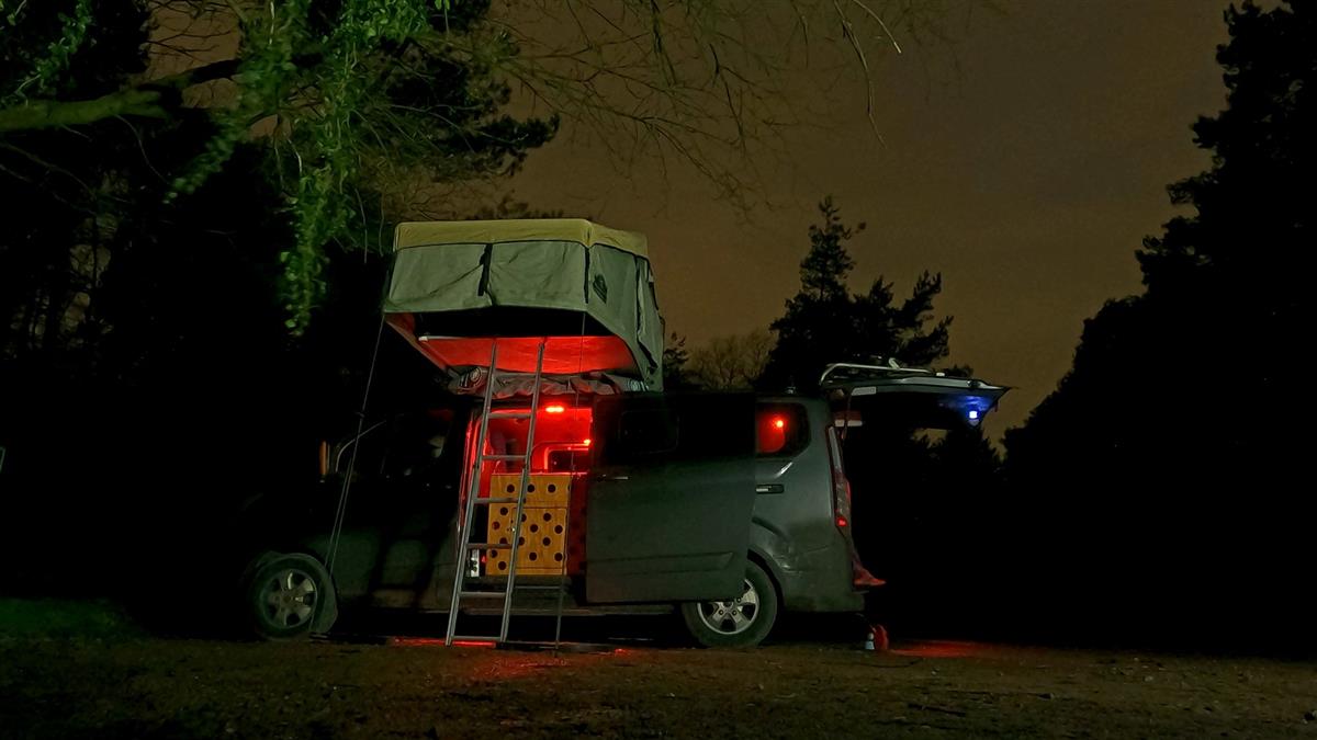Trialling a roof tent on the adventure bus.