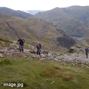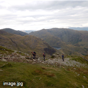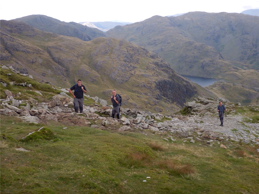 A clear warm afternoon provided perfect conditions for the ascent of the Old Man approaching from the Coniston side. Panoramic views of the Lakes and a good insight to our next walk on Scafell