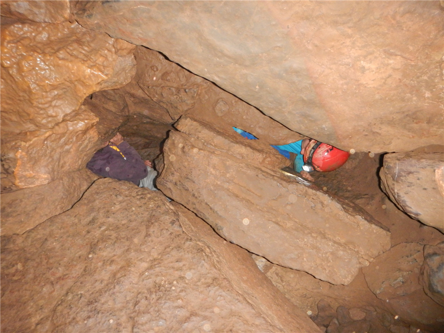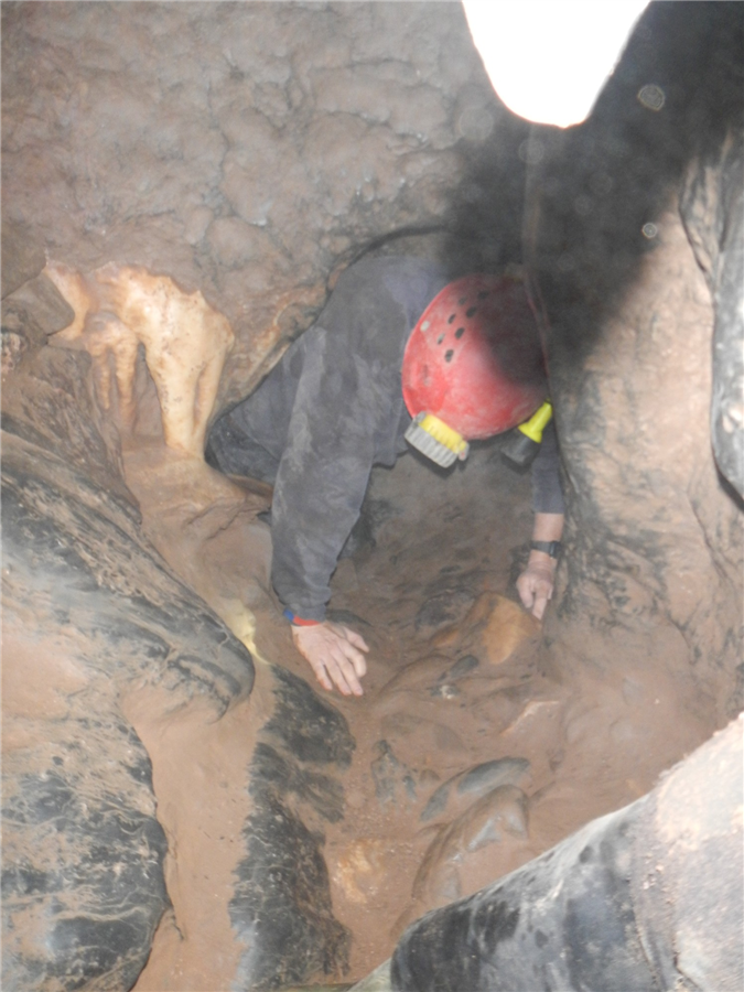 A little history and geology was shared before trying the slide and dropping down Giants steps. We explored the high level passage and headed down the terrace into the Boulder chamber.